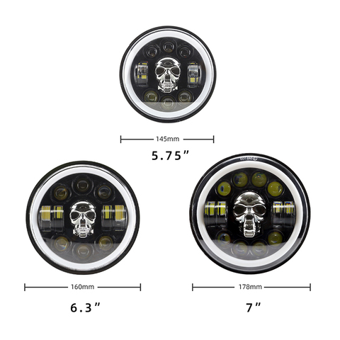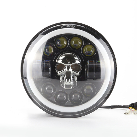 7 इंच खोपड़ी एलईडी हेडलाइट डीआरएल हाय/लो बीम H4 180W जीप के लिए हेलो अंगूठी एम्बर एन्जिल नेत्र niva मोटरसाइकिल IP68 12V